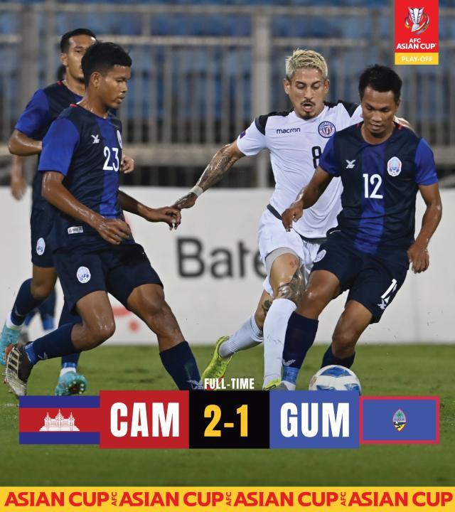 柬埔寨队作为四支成绩最差的球队之一,经过抽签之后需要与关岛队进行一轮主客场制附加赛。受到目前的疫情影响,经过亚足联的协调,柬埔寨队和关岛队均集中到巴林的麦纳麦进行两回合角逐。结果,10月9日,柬埔寨队在首回合比赛中以1比0小胜关岛队;10月12日的第二回合比赛中,柬埔寨队再次以2比1取胜。这样,柬埔寨队以3比1的总比分取得了亚洲杯预选赛第三阶段比赛的资格。